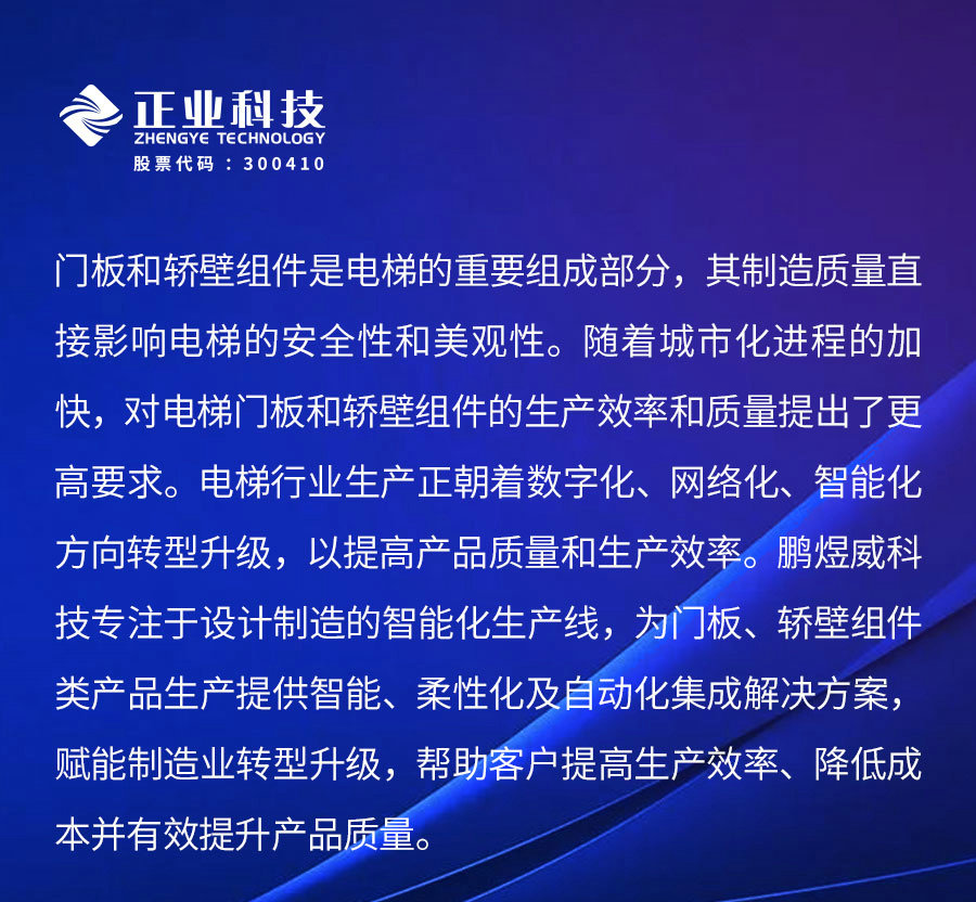 鵬煜威科技為電梯門板、轎壁類產(chǎn)品提供一體化智能生產(chǎn)線