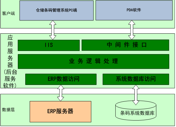 數(shù)據(jù)層為ERP服務(wù)器和條碼系統(tǒng)服務(wù)器。